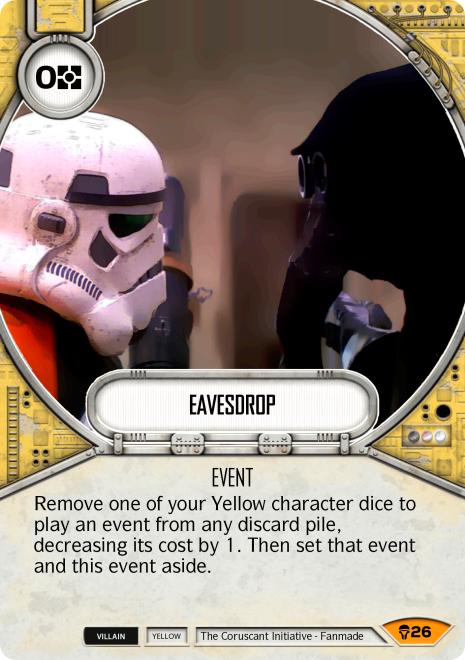 We wanted to thank all the designers and playtesters who made this new set of 90 cards possible. Also, you may remember we had organized a design contest a few months ago, in order for our players to have a chance to see one of their idea printed in our set. So here we are... Congratulations to chromesto (from Finland) and 3c-1o (from France), for having proposed respectively the cards Eavesdrop and Tranquility. And of course, a huge thank you to all participants.