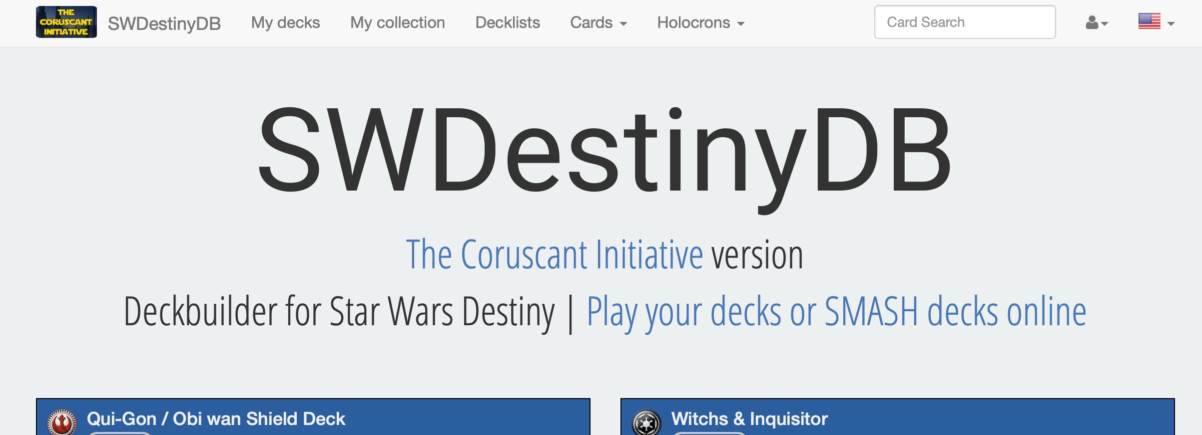 First, you will now be able to enjoy a copy of the SWDestinyDB online database, focused on the TCI project. The functionalities remain exactly the same, so you can manage your collection and your decks there (or even import them from the original site, using the export in text file format). The advantage of using our own version are: